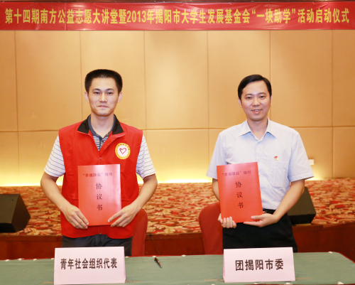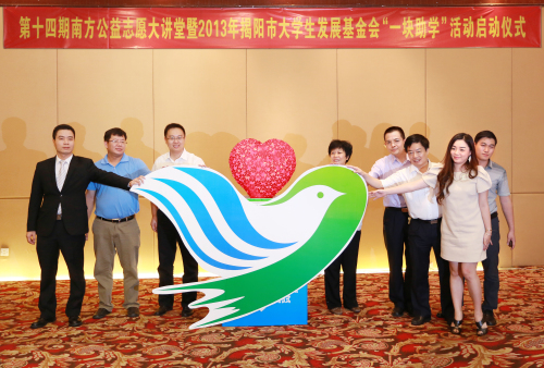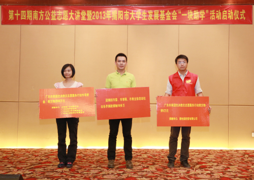 随着2013年揭阳市大学生发展基金会“一块助学”活动正式启动,一场由全社会共同参与的公益热潮,将在揭阳三江大地上传递爱与奉献的正能量。