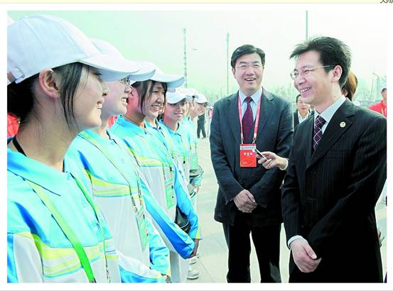 贺军科书记与志愿者亲切交谈