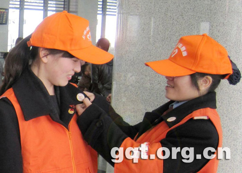 中国共青团网1月30日讯 (记者张晓琳通讯员曹伟摄影报道)在今年上海铁路青年志愿服务活动启动仪式上,近百名佩戴了“铁路春运激励徽章”的志愿者们用自己的热情和激情庄严宣誓:尽已所能,无私奉献,为和谐春运、平安春运贡献青春和力量!今年春运,上海铁路局团委共招募社会志愿者2500余名,随着春运志愿服务在全局31个车站全面铺开,铁路的“徽章文化”也在志愿者中开始流行起来。