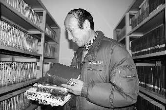 支教时,孙其印每天都要查看图书。 寇润涛 摄