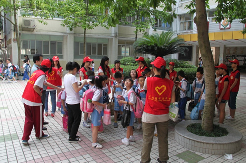 白云区景泰社区青年志愿者社区少年儿童守护服务队今天正式上岗服务