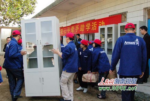 在今年海南遭受49年以来特大暴雨后,安利海南志愿者协会展开了“安利志愿者爱心手牵手助学行动”,面向灾区部分受灾严重的乡村小学,送去电脑、书桌、图书和体育用品等学习物品。
