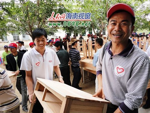 11月26日下午,“安利志愿者爱心手牵手助学行动”来到国家级贫困县陵水县隆广镇北光小学,安利向学校捐赠了五十套课桌椅及一批体育用品,安利志愿者为学生送上了写有殷切祝福的爱心卡、并张贴在每张书桌上,激励每名学生奋发向上;安利志愿者并与学生展开了欢快的“爱心手牵手”文体联谊活动,使欢笑环绕在这所乡村小学的校园里、快乐洋溢在每个乡村儿童灿烂的笑脸上。