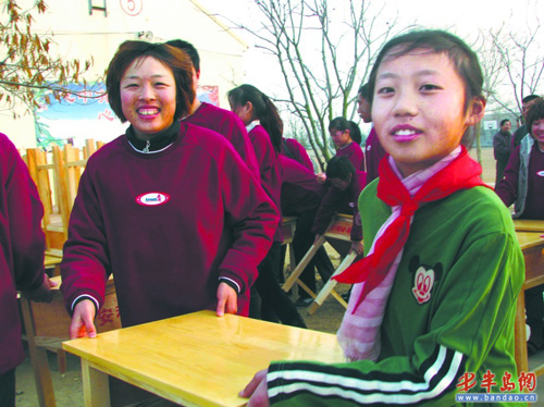 11月24日,本报牵手“希望”活动再次走进希望小学,由即墨安利公司捐助的250套课桌椅及部分文具,送进即墨市移风店镇金羚希望小学。