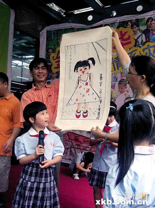 华阳小学小女孩姝媛将她最喜爱的作品《春早》捐赠出来义卖,为四川肢残孩子来广州看亚残运筹集经费。