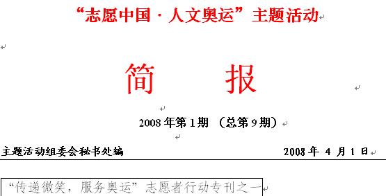 “传递微笑,服务奥运”志愿者行动专刊之一