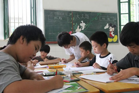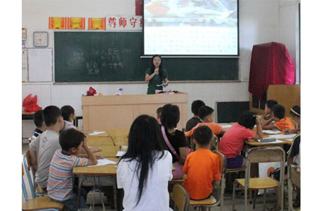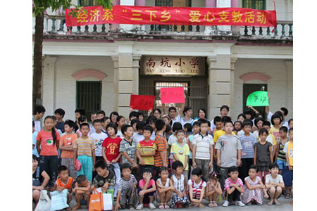 2010年7月13日清晨,往日宁静的校园伴随着小朋友们的欢声笑语而充满了朝气。简单而又隆重的开学典礼过后,为期五天的华南师范大学增城经济系暑期“三下乡”社会实践活动爱心支教兴趣班正式开课!本次支教的方向共分为五个大方向,分别是美术班、舞蹈班、写作班、音乐班和公共课,对象是南坑小学六十多位二到六年级的小学生。