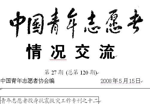 送:团中央抗震救灾工作联合办公室、办公厅、宣传部、机关党委
