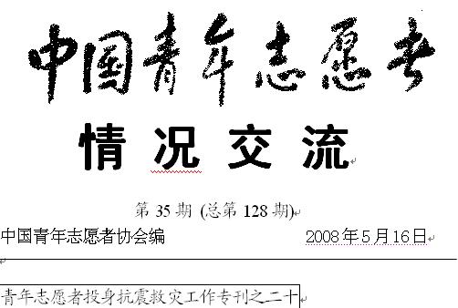 送:团中央抗震救灾工作联合办公室、办公厅、宣传部、机关党委