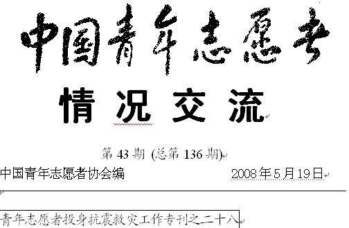 送:团中央抗震救灾工作联合办公室、办公厅、宣传部、机关党委