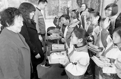大连理工志愿者为沙区贫困子女赠送学习用品