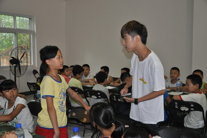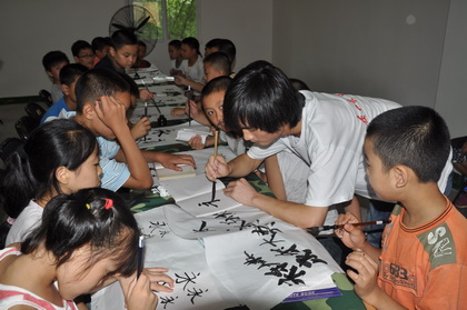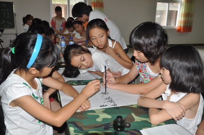 “快乐学校”一行5名志愿者老师分别为小营员们讲授了节目小主持、书法、新闻小记者等课程,与大家开展互动游戏,受到小营员们的热烈欢迎,赢得大家的阵阵掌声。
