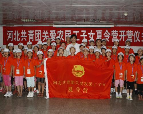 2010年8月19日,由共青团河北省委、省青年志愿者协会主办的“成就梦想、点燃希望”为主题的河北共青团关爱农民工子女夏令营在石家庄正式开营,梅世彤同志、胜兴国际集团人力总监孙莹等同志出席开营仪式。开营仪式上,团省委副书记梅世彤为营员代表授营旗,志愿者代表与农民工子女进行了结对并赠送了志愿服务爱心卡,来自石家庄的农民工子女代表张泽丰进行了发言,与会领导还为营员赠送了书包等用品,最后梅世彤同志宣布夏令营正式开营。