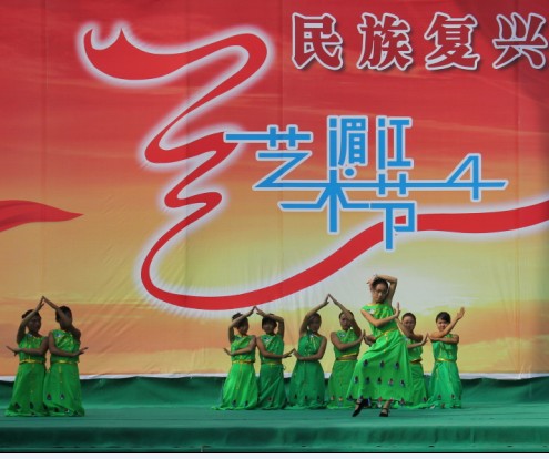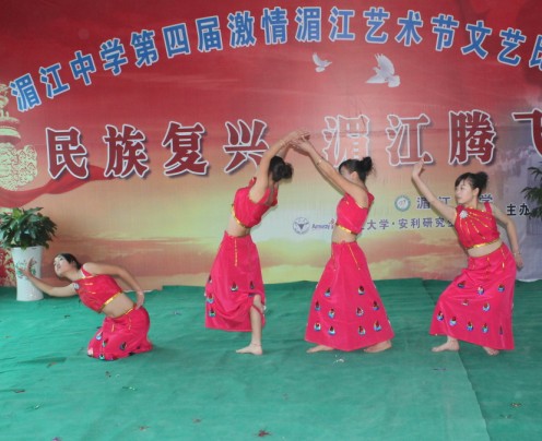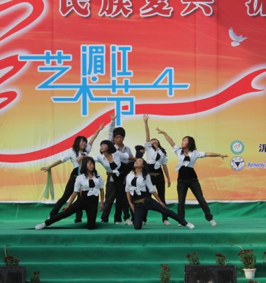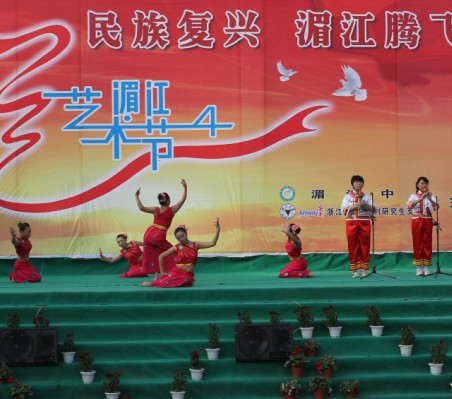 本届“激情湄江”艺术节主题为“民族复兴·湄江腾飞”,不仅寓意着母校的发展,也是为了让更多的学生,尤其是农民工子女,能够理解自己的父母,也是为祖国其他地区的发展做贡献。为了更好地诠释这一主题,支教团精心策划,组织开展书法、绘画、手抄报、手工制作等7类作品征集活动,设立了“激情湄江”文艺创作奖,并举办了精彩的文艺节目比赛和文艺汇演。在湄江中学支教的陆贤彬同学积极贯彻团中央关于农民工子女的工作,尤其注重对农民工子女的培训和发掘。正是他的不懈努力,使得更多支农民工子女的参赛队伍站到了领奖台上。