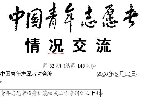 送:团中央抗震救灾工作联合办公室、办公厅、宣传部、机关党委