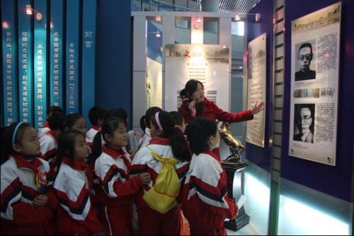 11月26日,在合肥团市委、蜀山区团委和安徽大学志愿者组织的精心安排下,50余名来自合肥市蜀山小学的农民工子女在安徽大学商学院志愿者的陪伴下,参观了安徽大学磬苑校区、杏坛广场、文典阁、校史陈列馆、图书馆等。
