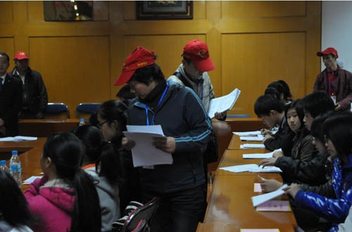 爱心小红帽们正在紧张工作