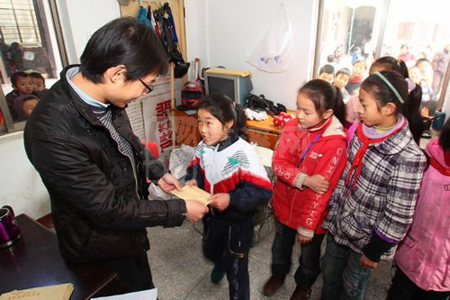 湖州在线讯 昨天,由团市委、市志愿者协会联合开展的“温暖惠民,志愿同行”志愿者新春送温暖惠民活动上,来自湖州良友、吴兴区织里通益、南浔向阳等8所民工子弟学校的贫困学生,以及市本级低收入家庭青少年共计200余名孩子,领到了装有400元助学款的新年“温暖”礼包。