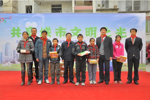 1月7日,共青团福建省委,福建省青少年发展基金会,福建省青年志愿者协会,安利中国日用品公司联合在晋安区站北外口小学开展“共享城市文明之光”主题活动,团省委副书记兰明善看望、慰问了学校教师和在此就读的农民工子女。当天,主办方向学校捐赠了价值3万多元的图书、乒乓球桌等物品,并和同学们开展了丰富多彩的游园活动。在这样一个潮湿寒冷的冬天,同学们收到如此厚重的一份新春礼物,心里倍感温暖。