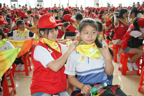 5月28日下午,福建省委书记孙春兰、省长黄小晶等省领导来到以农民工子女为主的福州前屿小学,与在这里开展服务的青年志愿者一道,共同为孩子们庆祝六一儿童节。团省委、省青少年发展基金会还举办了“携手农民工子女看世博”活动,在世博会“福建周”期间,组织农民工子女与城里的孩子结对,一起去上海看世博。
