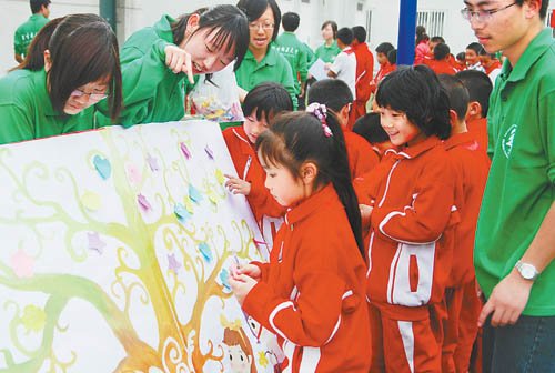 今年3月以来,为深入贯彻团中央关于开展“共青团关爱农民工子女志愿服务行动”指示精神,切实推动“人文北京、科技北京、绿色北京”三项青年行动计划实施,为建设和谐社会首善之区和世界城市贡献青春力量,北京团市委围绕“心手相牵快乐成长”主题,在全市启动了北京共青团“关爱农民工子女”志愿服务行动,积极开展调研工作,了解掌握在京农民工子女总体情况及实际需求,成立了工作领导小组,制定形成《北京共青团“关爱农民工子女”志愿服务行动实施方案》,将此项工作作为今后重点开展的基础性工作来抓,并逐步形成长效机制。4月下旬,团市委面向社会发出《弘扬五四精神,争做时代先锋——关于开展“关爱农民工子女”志愿服务的倡议》,号召动员广大团员青年、志愿者在五四青年节期间参与志愿服务活动,为农民工子女提供帮助、解决困难。同时,为推动此项工作深入开展,加强示范引导,团市委重点选取了7个代表性志愿服务项目,于“五四”青年节当天集中开展。