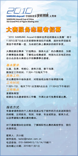 中国杯世界花滑大奖赛志愿者招募