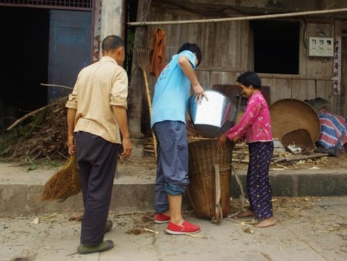 由于没有课,下午的时间随意的旁听着志愿老师们的课,观察着这些孩子们积极或者消极的表现。大多数的他们都有着开朗的性格,喜欢笑喜欢闹,他们都有着丰富的想象力,能画出别致的笑脸,他们都很想表达自己,喜欢唱歌喜欢听故事。不知不觉,一下午的课结束了,挥手跟排着队准备走山路回家的他们告别,他们已不再那么拘谨胆怯,跟我们开心的笑着说BYEBYE。我们几个人一队送他们几百米路程。不到我们一半高的他们,已经那么习惯的走着泥泞不平的土石路,爬山走半小时到一小时回家。我还在盘算着要买一条长裤以防虫子咬。想想是不是真的不如他们勇敢呢?