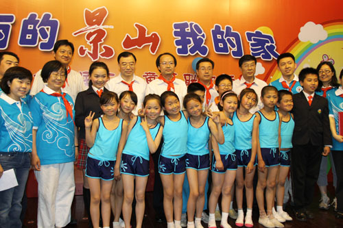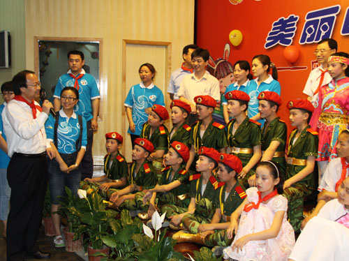 6月1日下午,“美丽的景山我的家”庆祝六一国际儿童节联欢活动在景山街道办事处礼堂举行。团中央书记处书记周长奎,北京团市委书记王少峰,东城区委书记杨柳荫,团中央青年志愿者工作部副部长郭平,东城区委常委、组织部部长吴松元,北京市志愿服务指导中心主任郭新保等领导同志参加活动,与“你和我”景山青年志愿者联盟志愿者代表、景山街道驻地四所小学的近百名农民工子女共度第61个“国际儿童节”。