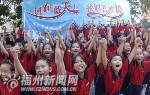 4日下午,福州市前屿小学传出了《红领巾飘起来》的欢快歌声,数百名农民工子女在此手拉手,喜迎属于他们的夏令营(如图)。这场以“同在蓝天下,我们共成长——争做文明都市人”为主题的农民工子女夏令营将历时近半个月。团市委表示,今年暑期全市计划组织不少于百场类似的农民工子女夏令营。