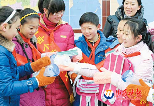 收到志愿者送来的礼物,孩子们特别开心。本报记者葛薇摄