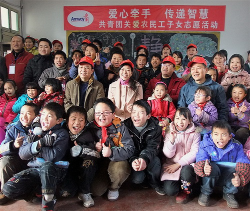 2011年春节将至,为了向广大农民工子女送去温暖和关爱,2011年1月12日上午,团江西省委、省青年志愿者协会与安利江西分公司在南昌市英华外语学校举行了“共青团关爱农民工子女志愿服务行动”爱心送温暖活动。团省委副书记曾萍出席了本次活动。