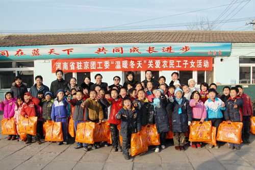 1月10日,河南省驻京团工委“温暖冬天”关爱农民工子女活动在北京石景山区树仁打工子弟学校举行。团省委书记侯红出席活动并讲话。团中央志愿者工作部、省驻京团工委有关同志、河南在京志愿者及打工子弟学校学生60余人参加了活动。