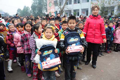 今天最开心的,莫过于古昌镇中心小学的留守儿童们了。他们背上崭新的书包,提着丰厚的礼物,和担任志愿辅导员的哥哥姐姐们结成了一对一对子,幸福与兴奋之情溢于言表。
