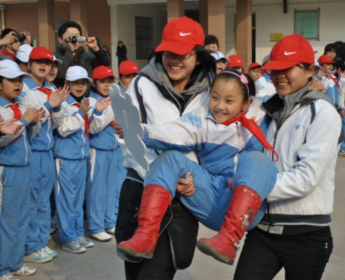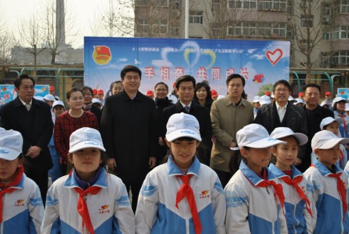 3月5日是第12个“中国青年志愿者服务日”。今天上午,共青团山东省委、山东省青年志愿者协会、共青团济南市委联合组织开展的3 5山东省暨济南市“青春助力—共青团关爱农民工子女志愿服务行动”在历城区文苑小学举行。来自山东大学的30余名志愿者与100名农民工子女共度志愿者的节日。活动现场,志愿者与孩子们做游戏、互赠礼物,共同表演手语版《感恩的心》,校园里处处洋溢着欢声笑语。活动结束时,志愿者和孩子们共同组成了志愿者标志。团山东省委副书记张辉出席了活动。