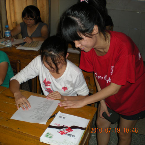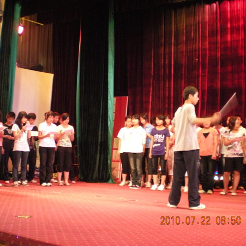 我们知道,一星期的短暂支教时间里,不能采取照本宣科的“填鸭式”传统教学方式,也不能期望学生们在这么短暂的时间内学到多少考点知识。我们确立了“培养兴趣、树立信心、激发潜力、启迪思想”的原则,用大学生自身的朝气活力启迪孩子们的思想和智慧,激发他们学习的兴趣,帮助他们树立成才发展的信心,为他们点亮通向外部世界的希望之光。志愿者们通过“如何学习语言”、“如何掌握单词和语法”、“如何提高阅读和写作能力”、“如何提高听力和口语能力”等系列专题模块,并开展“感受英文诗歌和散文”、“感受英文小说和戏剧”、“英语演讲比赛”、“英语辩论”等系列活动,有效活跃了课堂气氛,让原本羞于开口的他们终于打开了话闸,让原本对英语学习失去兴趣的他们终于重新体会到了外语学习的乐趣和轻松。22日上午,在实践活动的总结仪式上,志愿者们组织全体学生在台上开展了1个半小时的全英文汇报演出。学生们倾情表演了歌曲《que sera sera》、《hero》、话剧《灰姑娘》等精彩节目。他们流利的英语演出和充满朝气的青春活力,让台下前来慰问的领导们深受感动,也让与他们朝夕相处的班主任老师们欢心鼓舞……