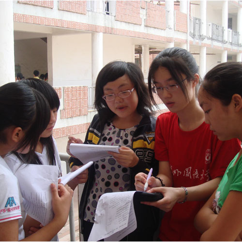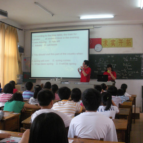 为10个班级570余名学生承担英语课堂教学任务,并要与高二、高三年级开展主题交流活动,这对于16名大学生志愿者来说着实是一种挑战。我们将16名志愿者分为4个小组,其中2个小组分别负责3个年级的课堂教学任务,另2个小组分别负责2个班级的课堂教学任务。这样有效落实了班级负责制问题。