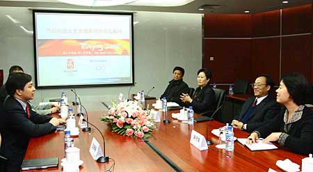 北京奥组委秘书行政部部长韩子荣、市场开发部部长袁斌、技术部部长杨义春陪同参观了联想集团。