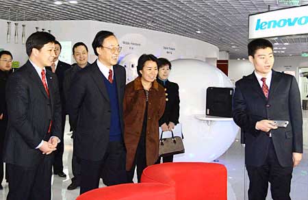 在联想集团大中国区总裁陈绍鹏、副总裁李岚的陪同下,刘敬民首先参观了联想集团研发中心创新中心,观看了联想集团数字媒体、奥运成果、台式电脑和笔记本电脑、安全芯片等业务的演示,并饶有兴致地亲自体验了部分产品。