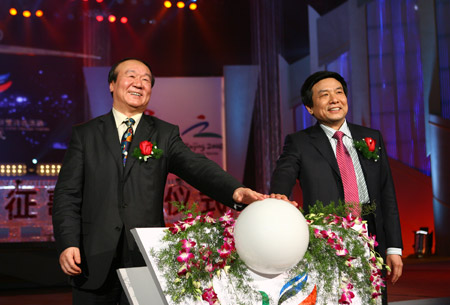 今晚,第四届北京2008年奥运会歌曲征集评选活动启动仪式在北京天桥剧场举行。中共北京市委常委、宣传部长、北京2008年奥运会歌曲征集评选活动组委会主席蔡赴朝,北京奥组委执行副主席、北京2008年奥运会歌曲征集评选活动组委会主席蒋效愚出席仪式。蔡赴朝、蒋效愚和著名音乐家吴祖强、乔羽,北京奥运会开闭幕式总导演、著名电影艺术家张艺谋共同为活动揭幕。