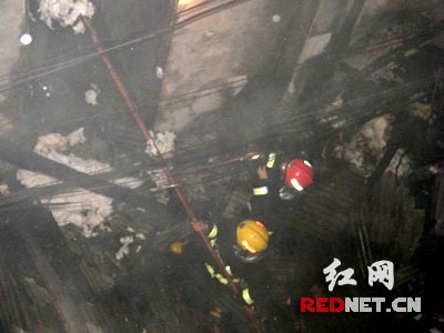 当日18时15分,吉首市消防中队接到火警后,迅速出动2台水罐消防车赶赴火灾现场。当消防官兵到达现场时,火势已经达到了猛烈燃烧阶段,整个操作间全是火红一片,浓烟正迅速向四周蔓延,与此同时操作间夹层上面储货仓库的大量棉被也开始燃烧,且大火有向东面发廊蔓延的趋势,情况十分危急。