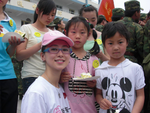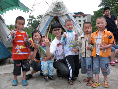 我和小雪(右一)提前共度这个特殊的“六一”儿童节,这五位小朋友在这次地震都成了孤儿