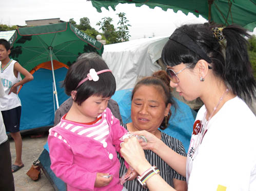 时间安排的非常紧凑。我们第一站落在了彭州的通济镇中学,孩子们正在废墟旁的临时教室里上课。