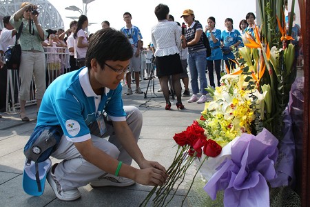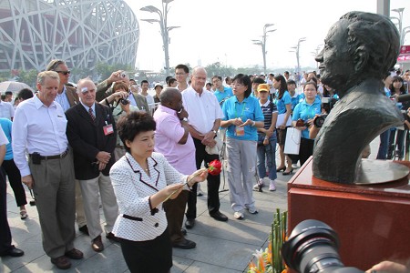 在北京奥运会成功举办两周年之际,为缅怀前国际奥委会主席萨马兰奇先生,8月8日上午,北京团市委副书记邓亚萍来到北京奥林匹克中心区,带领北京志愿者向萨马兰奇先生的铜像献花,感谢他为2008北京奥运会成功举办作出的杰出贡献。