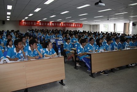 8月5日,为有效开展第一届北京奥运城市体育文化节志愿者培训工作,圆满完成奥运城市体育文化节志愿服务工作,团市委、北京市志愿者联合会、北京奥运城市发展促进会在北京科技大学统一组织了体育文化节志愿者集中培训工作。来自北京大学、清华大学、北京科技大学、中国农业大学、中国地质大学、北京化工大学、北京语言大学、北京信息科技大学、北京联合大学、北京城市学院等10所高校的400余名青年志愿者参加培训。