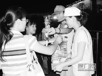 昨日傍晚,福建义工俱乐部厦门分会的志愿者们,走上SM城市广场、轮渡等地义卖玫瑰:所有的募集善款,全都捐给灾区的同胞。