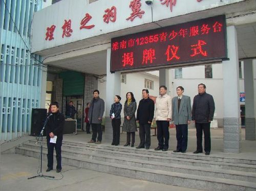 12月29日,淮南市举行12355青少年服务平台揭牌仪式。市人大常委会副主任孔令航参加仪式并揭牌。团市委书记胡林娜及市教育局、市司法局、市总工会、市妇联、市12355青少年服务台等单位的负责同志参加了活动。团市委副书记缪凯主持仪式。