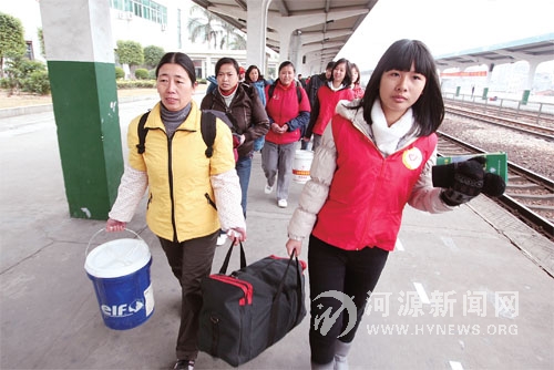 昨日,团市委组织30 名学生志愿者到火车站为旅客提行李包裹。春运期间,团市委、市志愿者联合会开展“青春情暖”——服务返乡旅客志愿活动,组织志愿者到汽车站和火车站提供志愿服务,包括出行咨询、购票引导、清洁卫生和重点旅客服务等便民利民的活动。