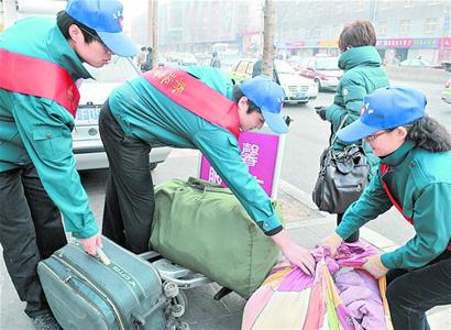 春运期间,交运集团的志愿者在客流密集的四方长途站和汽车北站开展服务活动,他们准备了手推车帮助携带大量行李的乘客搬运行李,同时开展助残助老、导乘服务、文明劝诫、维护秩序等志愿服务,保证春运安全有序、质量提升。