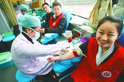 浙江宁波近日举办“血脉相联第二故乡”外来务工人员志愿者无偿献血活动,60余名外来务工人员志愿者积极参与献血,以缓解宁波市中心血站血液库存不足状况。张培坚摄( 新华社发)