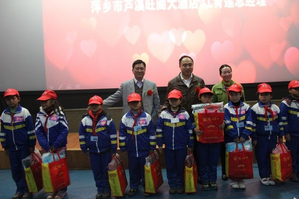 十位爱心大使向来自芦溪县三所小学的50名贫困农民工子女学生赠送了爱心礼包,礼包中除了有新衣新帽外,还分别根据每个小朋友的心愿,配发了小礼物,包括篮球、童话书、书包等。